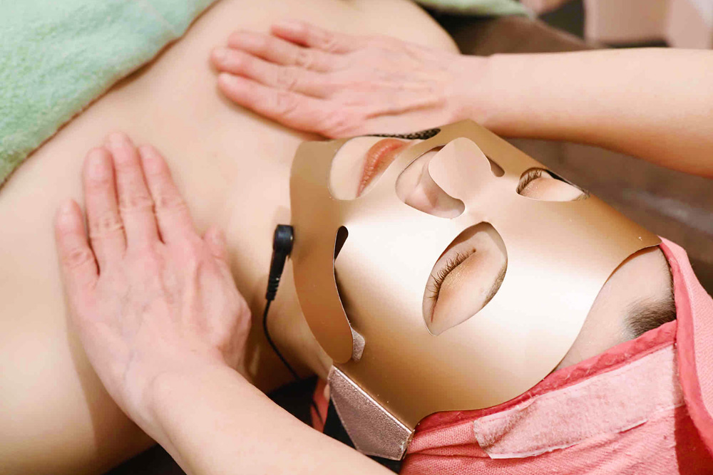 しっかりとお顔の筋肉をほぐして、コラーゲン+美容液+リフトアップパック+リフトアップマスクの四層をベースに、その上からマスク型の機械で電気を流します。