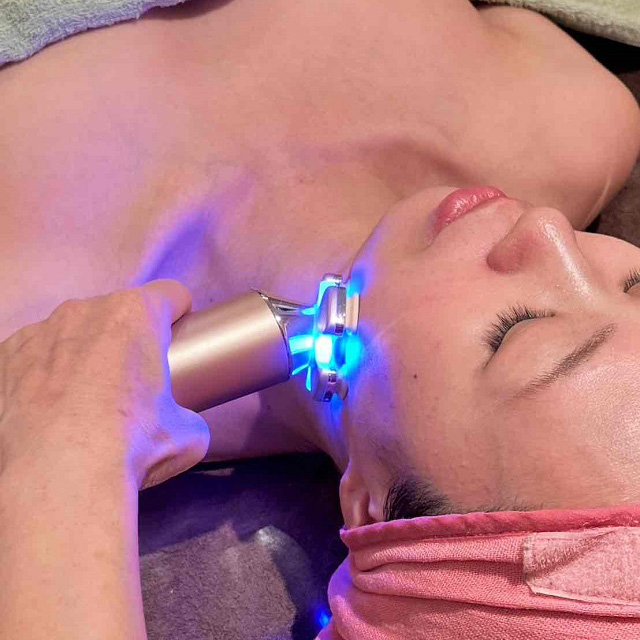 リフトアップ+美白コース(90分) クレンジング→泡パック→マシントリートメント(リフトアップ美容液・美白美容液導入)→マシントリートメント(表情筋トレーニング)→フェイシャルマッサージ→リフトアップパック+美白パック→デコルテマッサージ→お仕上げ |