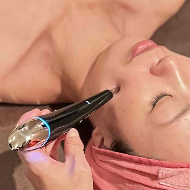 その箇所にEMSという電気を流す事により美顔鍼と同じ効果が得られます。それによりリフトアップするためクマ取りや糸リフトと同じような効果も得られます。個人差はありますが心地よい刺激で痛みはほぼありません。